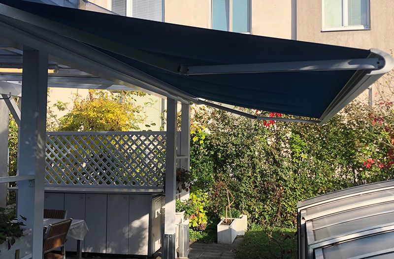 Bei diesem Projekt im 14. Bezirk durften wir zu der bestehenden Terrassen-Holz-Pergola einen seitlichen Sichtschutz montieren. Ein zarter unisolierter Aluminium Rahmen mit einer Glasfüllung und matt-weißer Sichtschutzfolie. Für die tief stehende Sonne wurde vorne eine Kassetten-Markise mit Funkmotor installiert, die ganz bequem bei Bedarf mit einer Fernbedienung geöffnet oder geschlossen werden kann. Der nächste Sommer kann schon kommen.